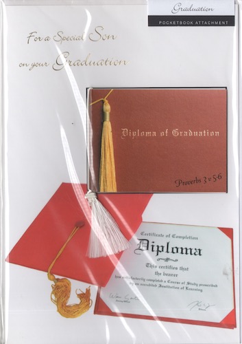 Greeting card for Graduation with envelope and Pocketbook Attachment.
