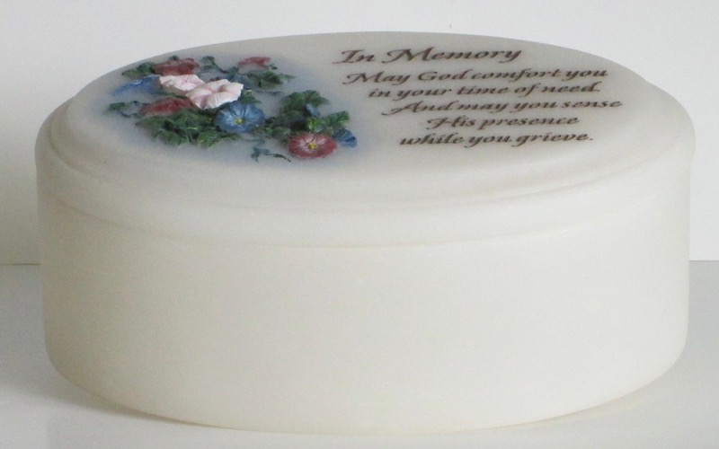 Keepsake box oval measures 5.25 x 3.5 x 2.2 inches.
