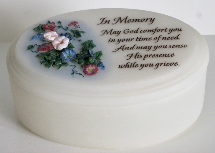Message on cover reads ” In Memory May God comfort you in your time of need. And may you sense His presence while you grieve.”