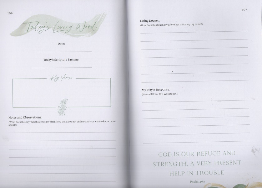 - abundant space throughout to journal your thoughts, questions, and prayer intentions;