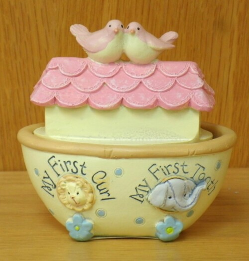 Ceramic night light plugs into wall outlet.