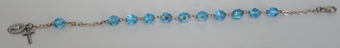 Glass beads 6 mm rosary bracelet, with miraculous medal and crucifix.