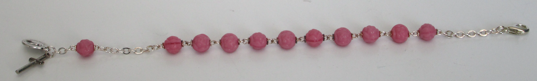 Rose beads 6 mm rosary bracelet, with miraculous medal and crucifix.