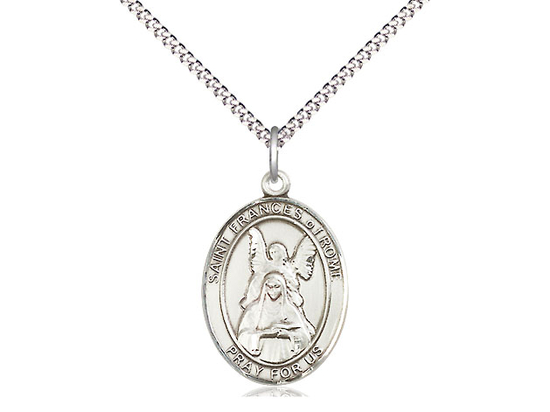 Oval 3/4 x 1/2 inch pendant on a 18 inch light rhodium curb chain.